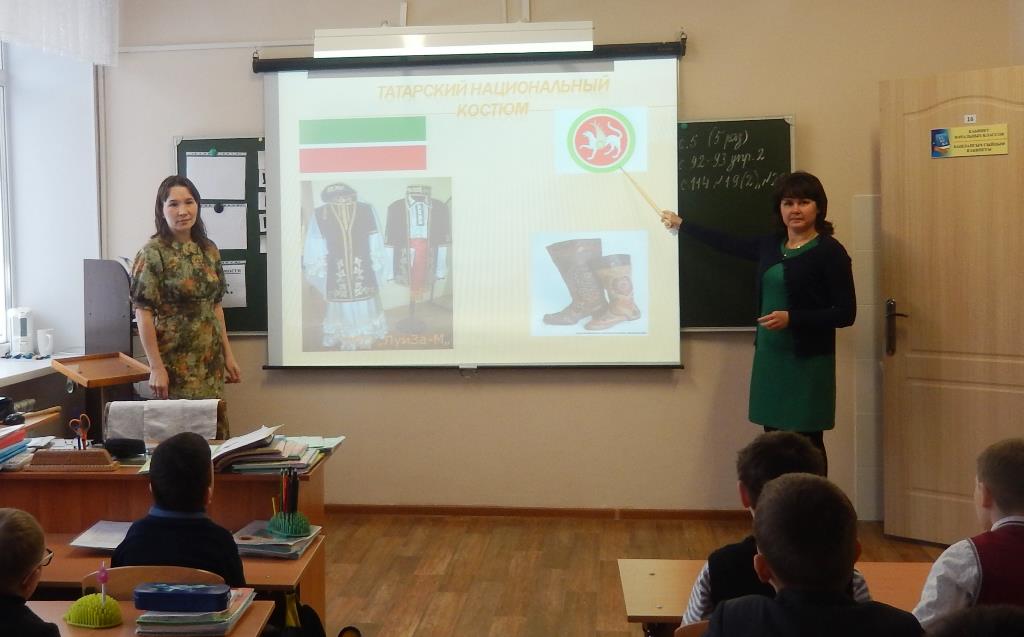 Опубликовано: 06.02.2018Согласно плану мероприятий, посвященных Международному дню родного языка учителями начальных классов Валиевой Р.Р. и Шайхутдиновой Э.Ф. был проведен тематический классный час на тему «Костюмы народов Поволжья». Учителя познакомили учащихся с национальными костюмами народов, населяющих территорию нашей республики, их обычаями, традициями.