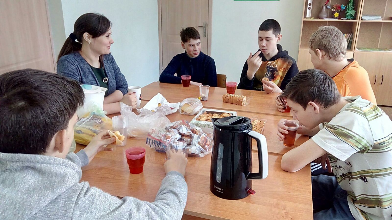Опубликовано: 29.03.2018Согласно плану воспитательной работы с учащимися на весенние каникулы, 29.03.2018г. ученики 8 классов под руководством педагогов Нуртдиновой С. А. и Галялтдиновой Г .Р организовали в классе чаепитие. Ребята делились впечатлениями о каникулах, слушали музыку и играли с педагогами в позновательные, интересные игры.