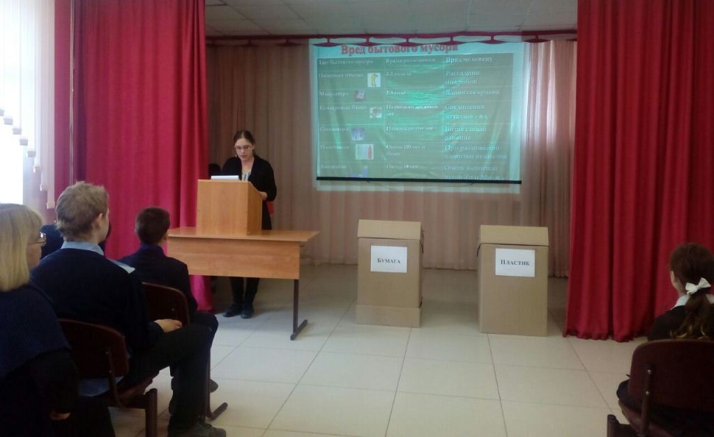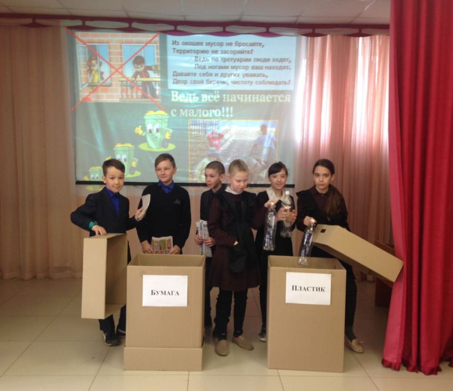 В ходе мероприятия учащиеся узнали о проблеме экологического состояния территории и природы в целом. Так же ознакомились с тем, как можно вторично использовать бумагу, стекло и пластик.