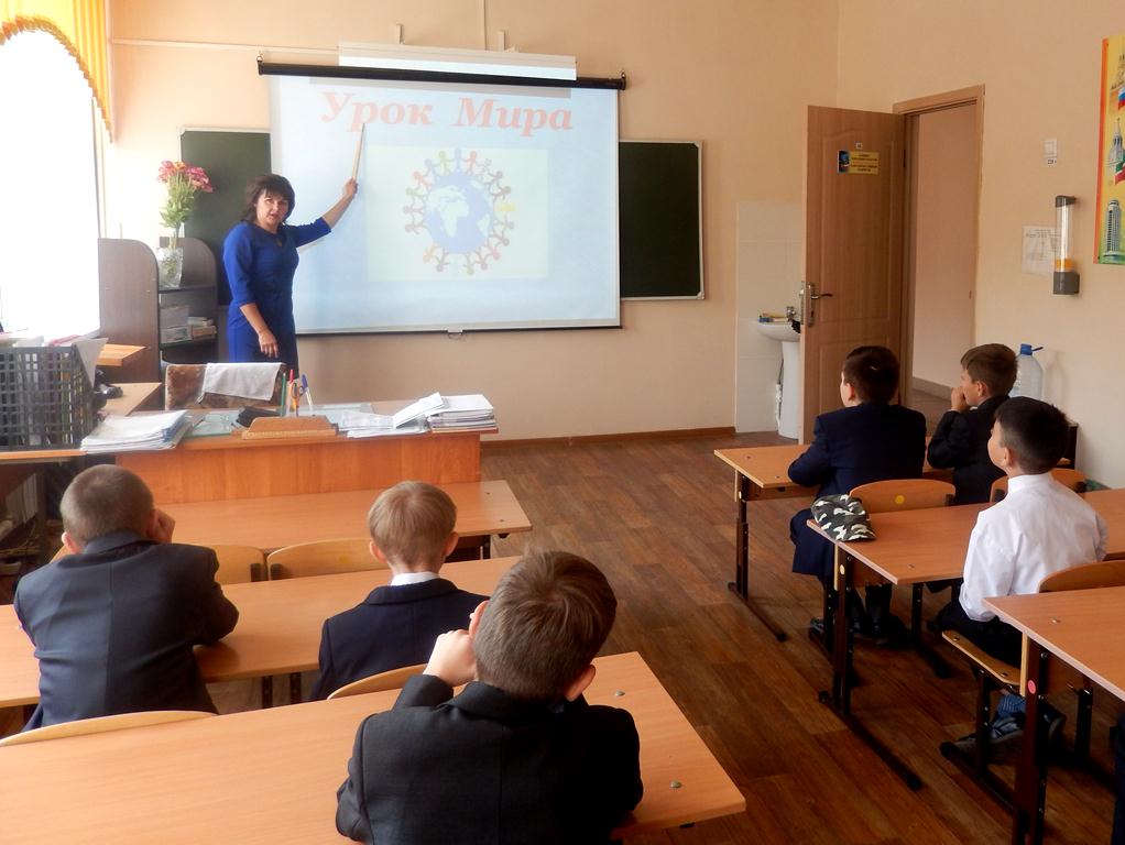 Опубликовано: 01.09.2018Согласно воспитательному плану мероприятий 01.09.2018г. в 1-9 классах ГБОУ «Набережночелнинская школа №69» был проведён «Урок мира». Цели и задачи данного мероприятия: сформировать у воспитанников чувство сострадания и отвращения к жестокости; развивать и приумножать лучшие качества человека: патриотизм, гражданственность, гордость за свою Родину, стремление к миру; раскрыть представление о толерантности; расширять кругозор и развивать познавательную активность; способствовать формированию активной жизненной позиции гражданина России. Ребята посмотрели презентацию по данной теме, приняли активное участие в беседе. В заключение некоторые ученики записали свои мирные пожелания жителям планеты Земля на символических голубях мира.