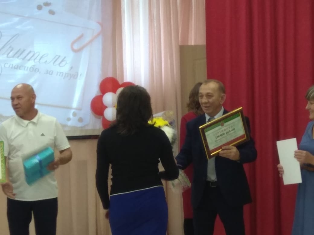 Сегодня в нашей школе был проведён праздничный концерт, посвященный Дню учителя. В нём приняли участие ученики 5-9 класса и учителя, звучали песни, стихотворения о школе и учителях, были поставлены юмористические инсценировки из школьной жизни. Почетными грамотами, словами благодарности, уважения и признательности директором школы был отмечен труд учителей. Учителя получили большой эмоциональный заряд и огромное удовольствие от проведённого мероприятия.