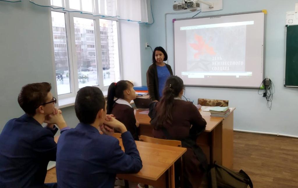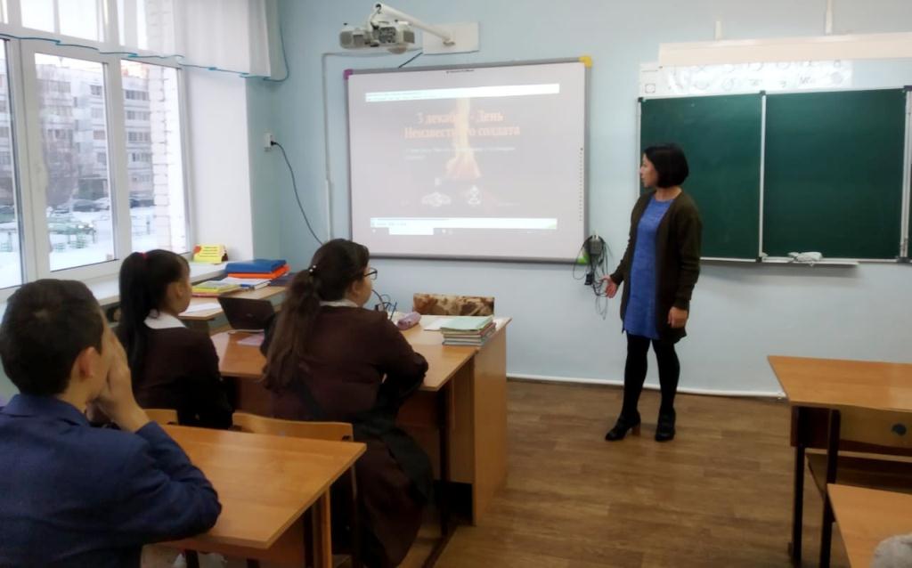 Опубликовано: 07.12.2018С 03.12 по 06.12 учителем истории Тимургалиевой Д.А. были проведены классные часы, посвященные ко Дню неизвестного солдата.