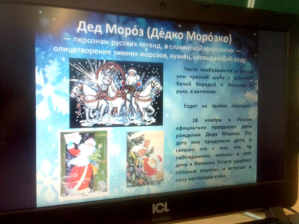 Опубликовано: 26.12.201826.12.18.г на базе школы №69 классными руководителями Юнусовой З.Е. и Нигметзяновой Г.Р. для 1 а и 1б классов было проведено мероприятие «Деды морозы в разных странах с изготовлением снеговика». На мероприятии учащиеся познакомились с тем, как отмечают праздник Новый год в разных странах мира, какие есть обычаи и традиции у разных народов, а также как называют Деда Мороза в разных странах. Затем изготовили снеговика из бумаги. Мероприятие прошло весело и задорно. Ребята остались довольны.