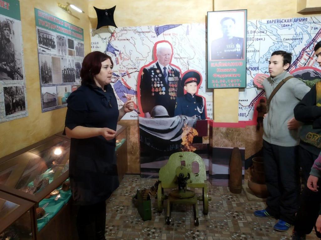 Опубликовано: 29.12.2018Экскурсия «Герои Советского Союза - наши земляки». 29.12.18г учащиеся 5б, 9а, 9б класса посетили музей ГБОУ «Кадетская школа Н.Кайманова».