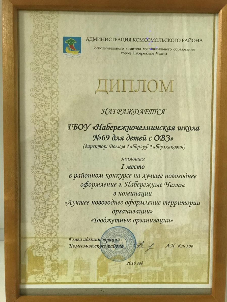 Опубликовано: 28.12.201827 декабря 2018г. школа заняла 1 место в районном конкурсе на лучшее новогоднее оформление г. Наб. Челны в номинации "Лучшее новогоднее оформление территории организации".