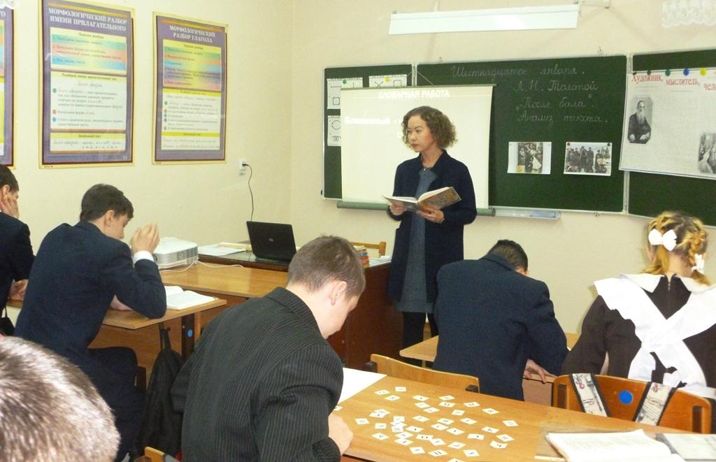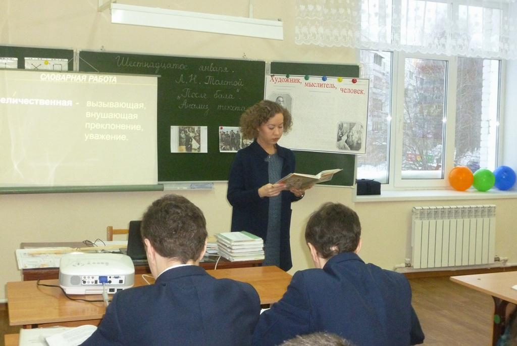 Опубликовано: 16.01.201916.01.19 в рамках декады учителей общеобразовательных дисциплин учителем русского языка и литературы Акбировой Г.Т. был проведён урок чтения в 8б классе по теме «Л.Н. Толстой «После бала». Анализ текста».