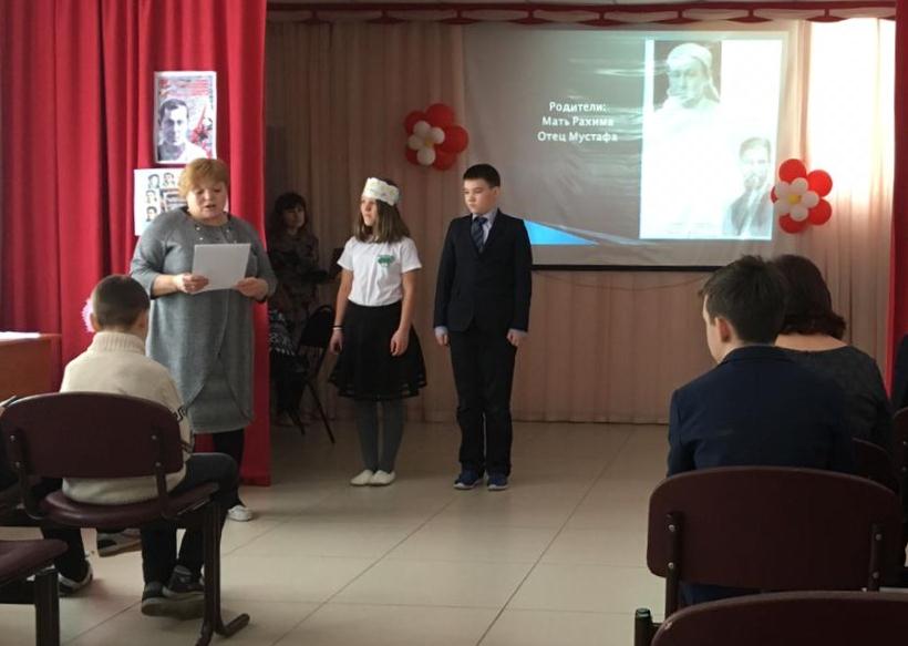 Опубликовано: 18.02.201918 февраля для 5-6 классов была проведена литературная композиция, посвящённая памяти татарского поэта, героя Советского Союза Мусы Джалиля. Дети наизусть читали его стихи, исполняли песни, танец "Ромашка", с интересом слушали от начала и до конца.