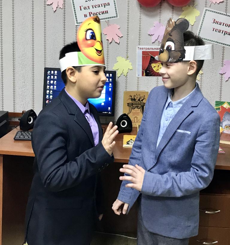 Опубликовано: 15.10.201915 октября 2019 года ученики 4 А класса под руководством педагогов Валиевой Р.Р. и Пищевских Я.А. посетили городскую библиотеку №23, где для них было проведено мероприятие, посвящённое году театра в России. Дети узнали, что такое театр, виды театров. Была проведена виртуальная экскурсия по театрам города Набережные Челны. Фания Вазитовна рассказала детям о профессиях в театре (актёр, режиссёр, гримёр, сценарист). Обучающиеся поиграли в сюжетно-ролевые игры: «Мы будущие артисты», «Я работаю в театре», где упражнялись в развитии выразительности мимики. Дети попробовали себя во всех актёрских профессиях и даже прошли кастинг на главные роли для спектакля. Ученики драматизировали сказки «Теремок», « Колобок». Дети с удовольствием перевоплощались в героев любимых сказок. В конце мероприятия был проведён конкурс на лучшее актёрское мастерство. Все участники были награждены сладкими призами.
