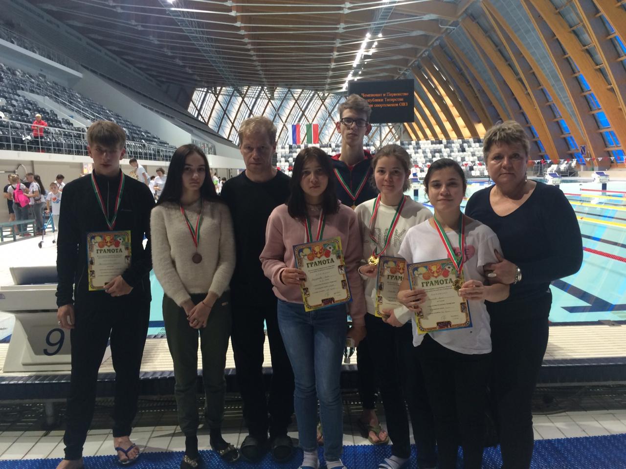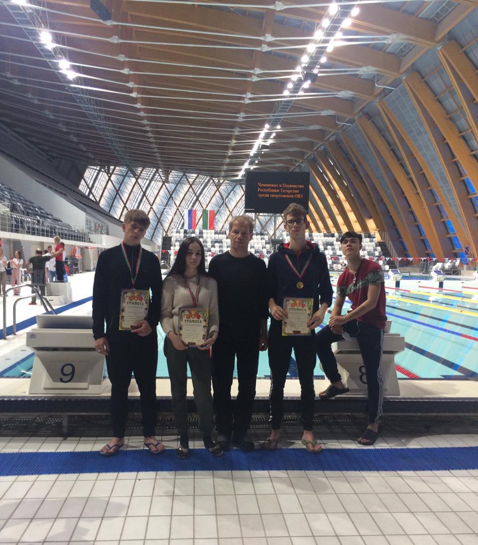 Команда Челнов была в сильнейшем составе титульных спортсменов республики по различным видам спорта, выступающие в статусе чемпионов и призеров РТ 2018-2019 г.г. Спортсмены боролись на равных на разных дистанциях 50м и 100м, в общекомандном зачете ребята завоевали 7 медалей, из них 4 золотых и 3 серебряных медалей, отличный результат! Стоит отметить наших учащихся школы №69 Александрова Даниила, Пишненко Геннадия и Олейник Анну - они показали наивысший уровень мастерства и в очередной раз доказали свое преимущество и место в сборной Республики Татарстан для поездки на Чемпионат России. Был снят видеорепортаж телекомпанией Челны-24 с участием Геннадия Пишненко, он прокомментировал свою победу, также тренер и руководитель сборной команды Набережные Челны М.В. Татаркин рассказал об участии ребята на плавании.