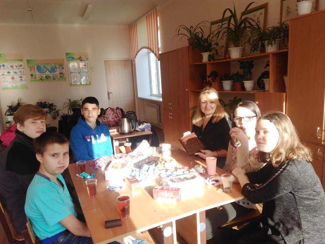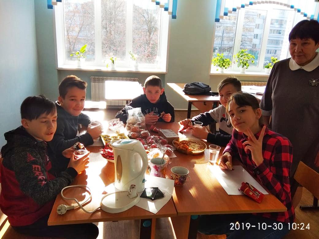 Опубликовано: 30.10.201930 октября 7А и 7Б классы посетили школьный музей "По дорогам войны", посвящённый юбилею 75-летия Победы. А также встретили "Осенние именины" дружеским чаепитием в классе.