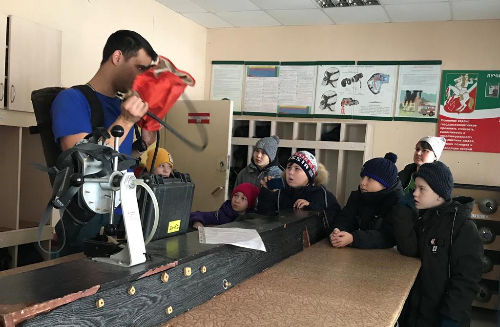 Чтобы показать историю развития пожарной охраны города Набережные Челны, в музее представлено значительное количество разнообразных экспонатов: рации, кинокамеры, пожарные каски, старинный насос и колокол-ретро-экспонат, форма середины ХХ века, нагрудные знаки и фотографии разных времен – некоторым из этих экспонатов уже более ста лет. Также ребятам рассказали о современной пожарной и спасательной технике, находящейся на вооружении МЧС, продемонстрировали пожарную технику, аварийно-спасательное и пожарно-техническое вооружение и подробно описали назначение каждого элемента. Детям было очень интересно примерить на себя боевую одежду пожарного и дыхательный аппарат на сжатом воздухе.