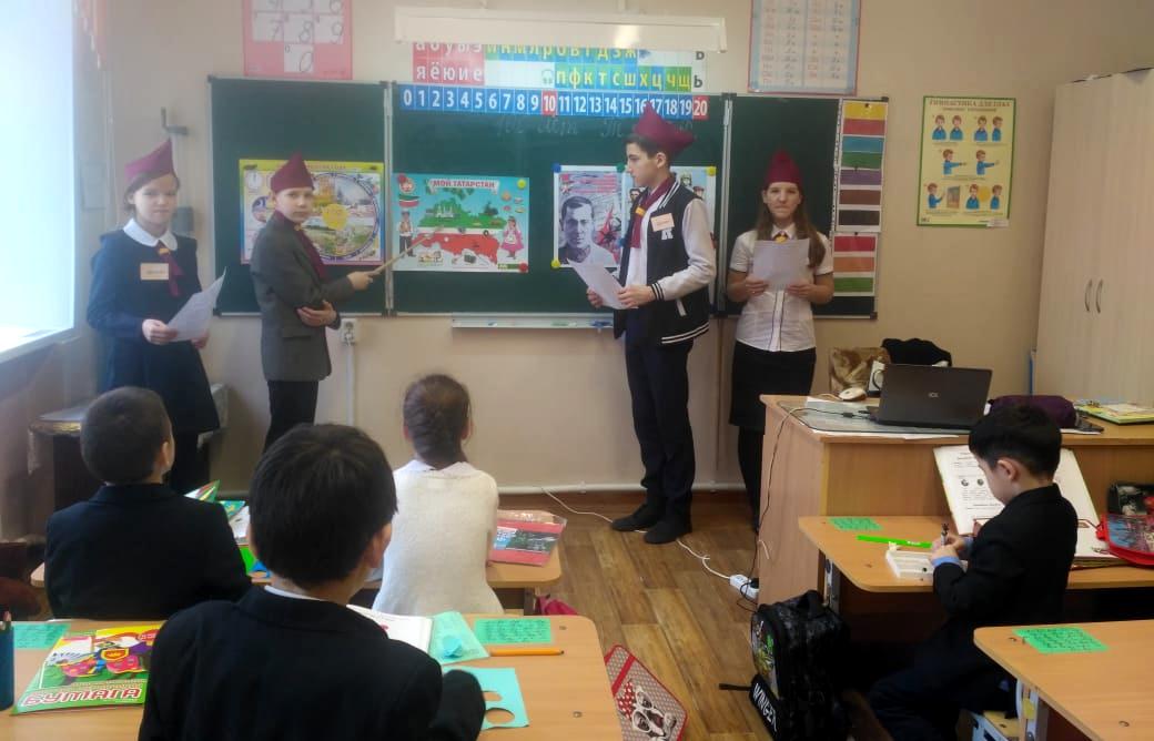 Опубликовано: 22.01.2020Тимуровский отряд "Дружба" рассказал ученикам 2Б класса о 100-летнем юбилее ТАССР. Тимуровцы рассказали об истории возникновения народа, спели на тататрском языке песню "Мин яратам сине, Татарстан", кратко изложили о великих людях Татарии.