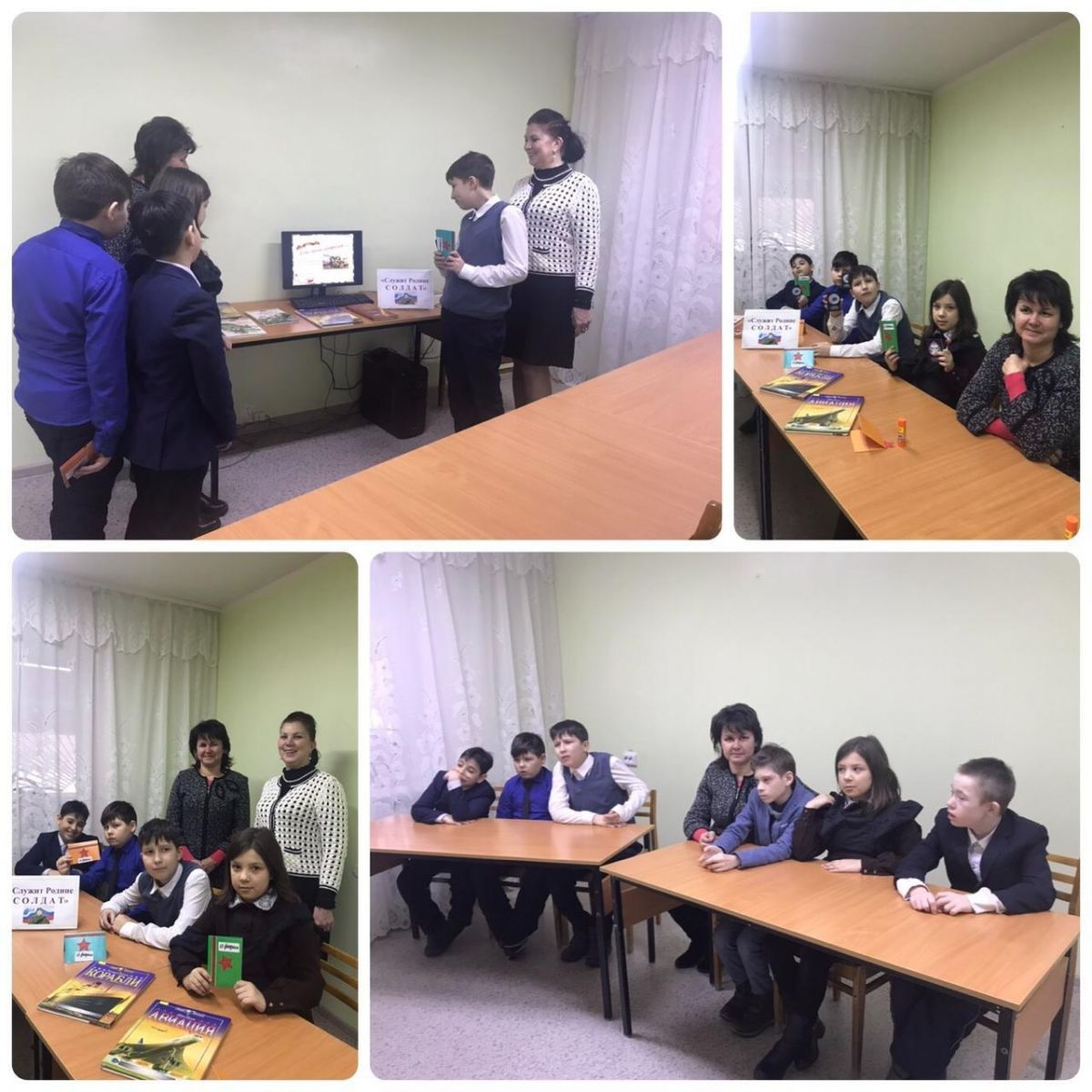 Опубликовано: 18.02.202018 февраля учащиеся 4 А класса под руководством педагогов Валиевой Р.Р. и Пищевских Я.А. посетили городскую библиотеку № 23, где было проведено мероприятие: «Служит Родине СОЛДАТ».