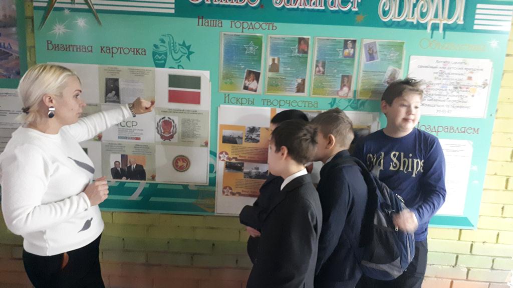 Опубликовано: 03.03.20205в класс с педагогом Брюховой С.С. прослушал информацию, посвященную "100-летию ТАССР". Методист МАУДО "ЦДТ №16 "Огниво " Солдатова Е.В. рассказа о истории возникновения герба, флага, о первом президенте. Задала вопросы, на которые дети с удовольствием отвечали.