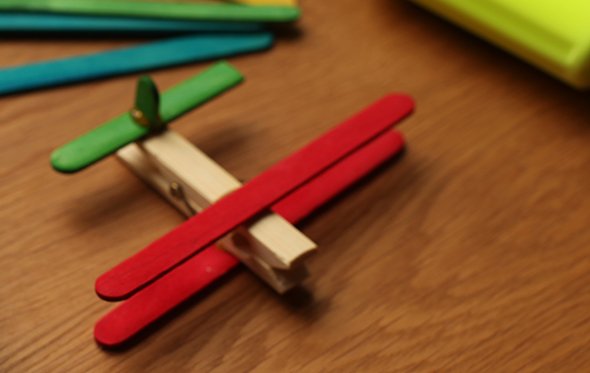Поделка № 2. Самолетик из прищепки бельевой и палочек для мороженого.