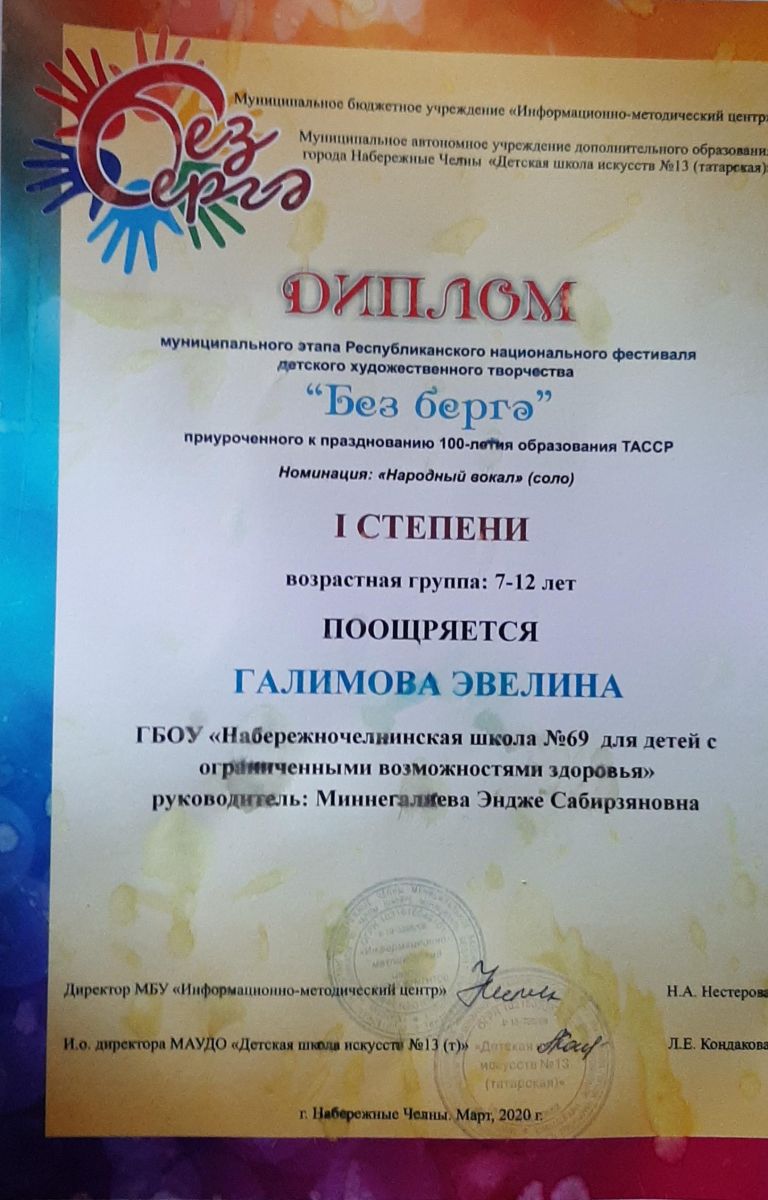 государственное бюджетное общеобразовательное учреждение «Набережночелнинская школа №69 для детей с ограниченными возможностями здоровья» / «Сәламәтлек мөмкинлекләре чикләнгән балалар өчен 69нче Яр Чаллы мәктәбе» дәүләт бюджет гомуми белем учреждениесе