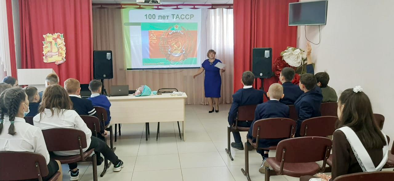 Опубликовано: 01.09.20201 сентября классными руководителями 7а и 7б классов Шайхигалиевой Ф.М. и Шакуровой А.Х. был проведён классный час "100 лет ТАССР".