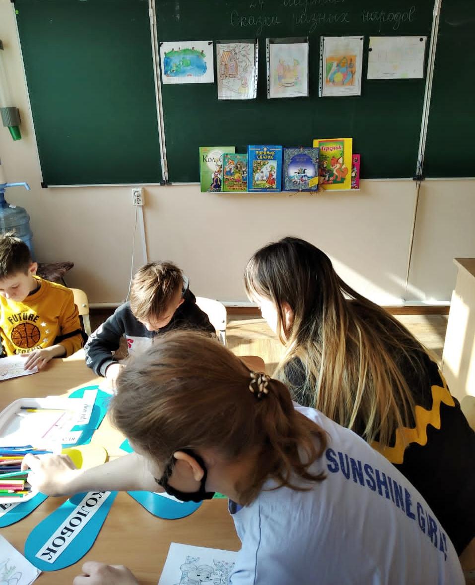 Ребята вспоминали и рассказывали народные сказки по названиям. Затем отгадывали по рисункам персонажи и раскрашивали их. В конце дети смотрели русскую народную видео сказку «Курочка Ряба».