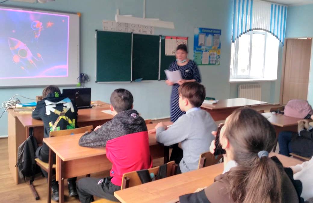 Опубликовано: 08.04.2021Согласно воспитательному плану в 8б классе был проведён урок, посвящённый 60-летию покорения космоса. Классный руководитель Шакирова Альмира Зуферовна преподнесла информацию в интересной форме, ученики активно отвечали на вопросы викторины.