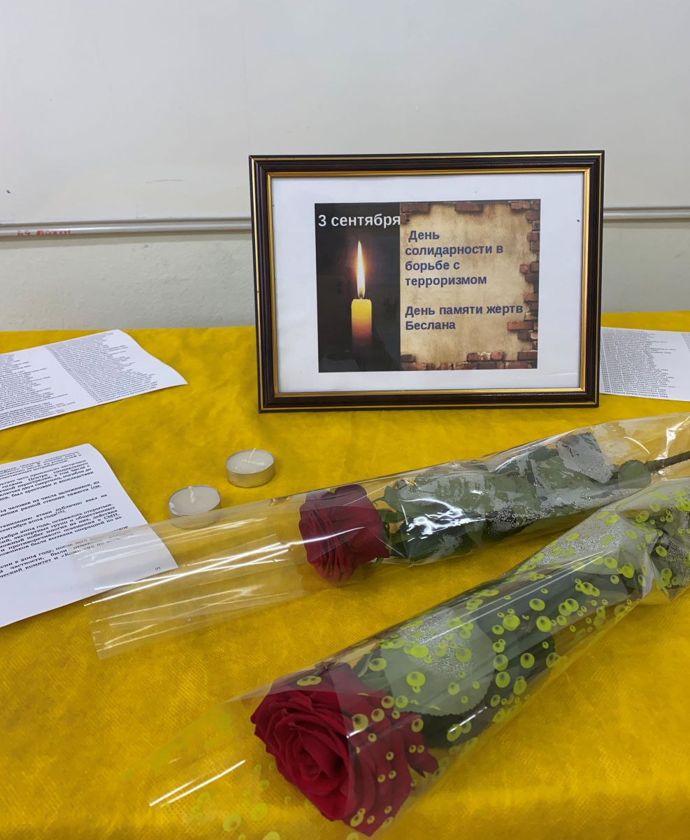 Опубликовано: 07.09.2021Педагогом Брюховой С.С. в 7В классе был проведен урок «Науки и технологии». Также с учащимися был оформлен уголок «Помним, скорбим, Беслан».