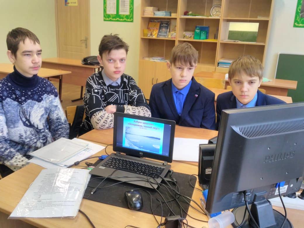 Опубликовано: 18.11.202118.11.21 на уроке безопасности 8б класс был ознакомлен с темой "Осторожно, тонкий лёд! Правила поведения на льду". Учащиеся закрепили знания с выполнением алгоритма, повторили несколько приёмов о спасении человека. Проведён инструктаж.