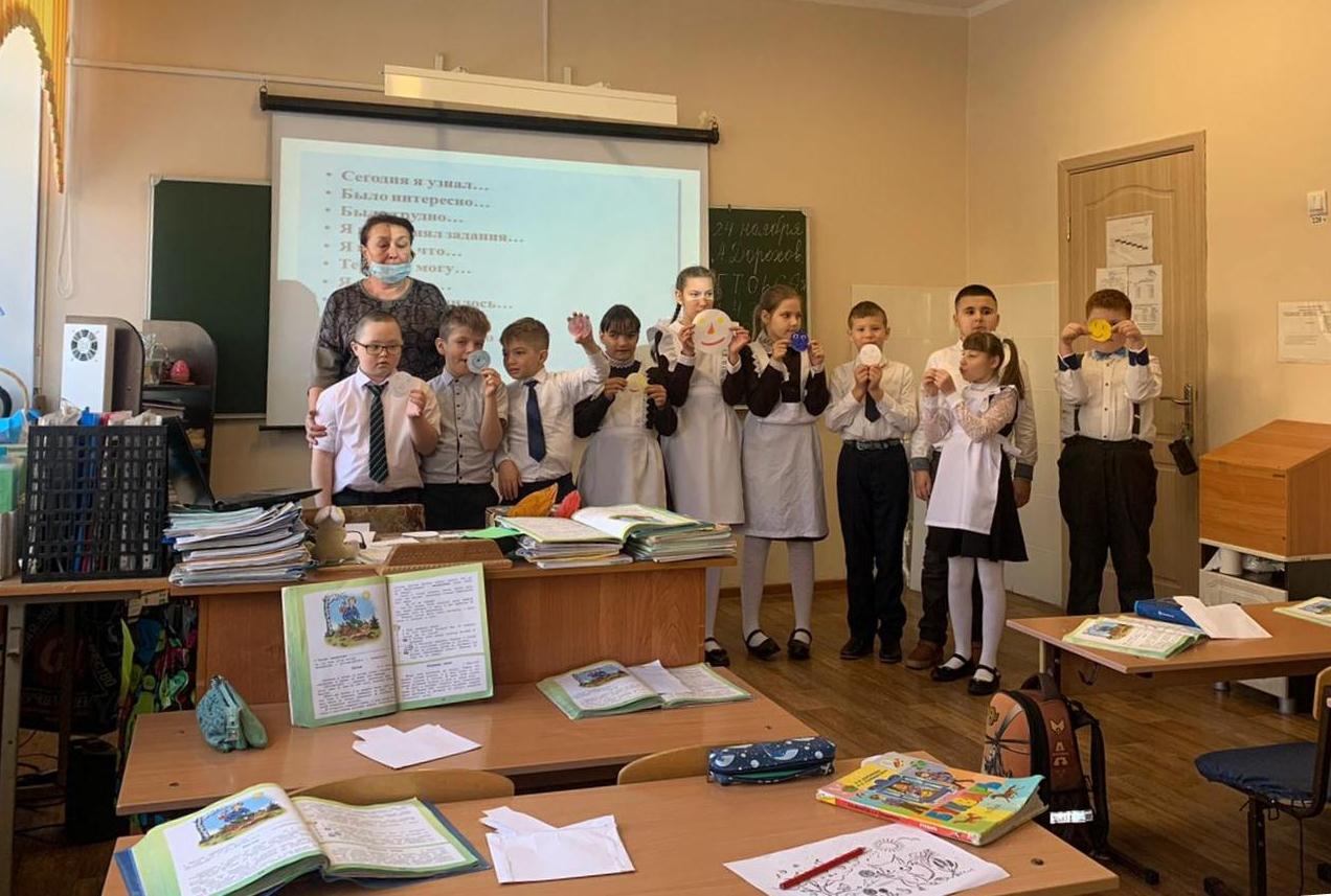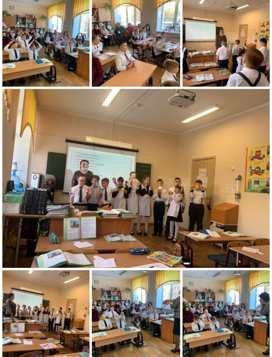 Педагоги школы поделились опытом работы и показали открытые уроки. Учитель ритмики Громова Е.Ю. и воспитатель Беседина Е.В. провели урок ритмики во 2 А классе по теме «ОРУ. Координация рук и ног при работе в парах». Учитель начальных классов Юнусова З.Е. провела урок чтения в 4А классе по теме «А. Дорохов. Гостья».