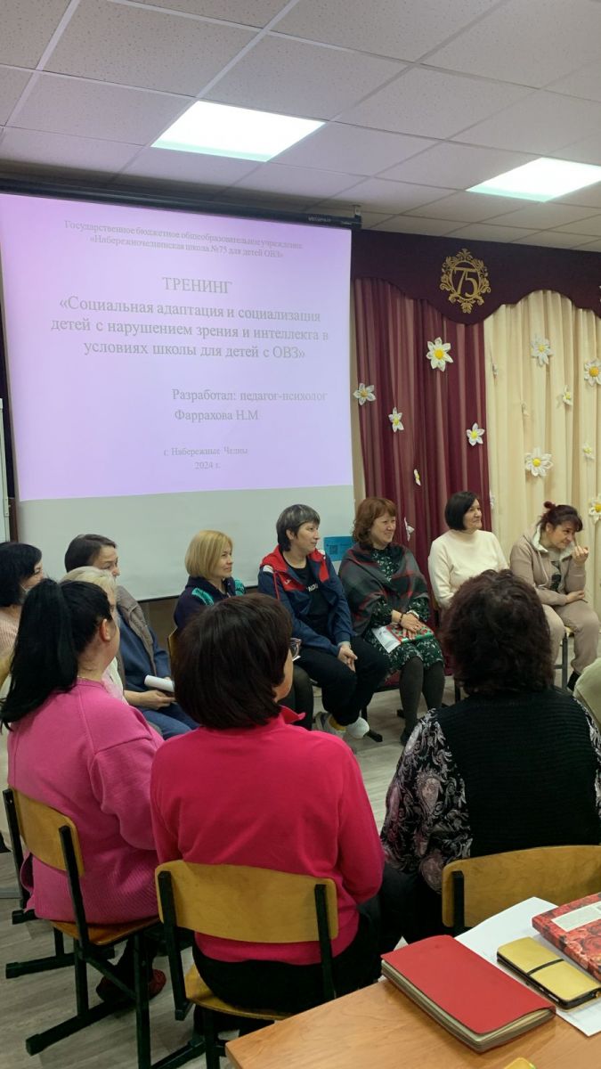 В школе, в первый день каникул, прошел Тренинг «Социальная адаптация и социализация детей с нарушением зрения и интеллекта в условиях школы для детей с ОВЗ», организованный психологом школы Фарраховой Н.Г.
