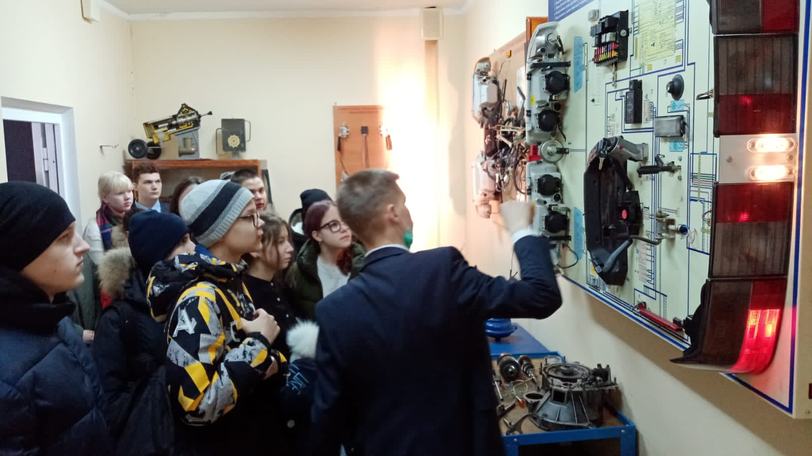Вёл экскурсию Киямов Фаиль Наилевич. Ребята узнали много нового, неизвестного и интересно-познавательного о том, какую профессию можно получить, как проходит обучение и что для этого используют. КГАМТ обладает всем необходимым для качественной подготовки специалистов в строгом соответствии с государственными стандартами и требованиями работодателей. Камский государственный автомеханический техникум (КГАМТ) был основан Приказом Министерства автомобильной промышленности СССР № 178 от 30 июля 1973 года для подготовки квалифицированных кадров со средним специальным образованием для заводов и подразделений КамАЗа. Постановлением КМ РТ №540 от 22.07.2015г. техникум реорганизован с присвоением имени Льва Борисовича Васильева – первого генерального директора ОАО КАМАЗ.