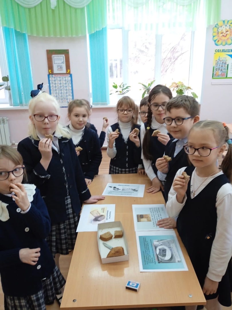 В ходе классного часа "Блокадный хлеб" учащиеся 2б класса познакомились с тяжёлыми условиями жизни блокадного Ленинграда, трогательными страницами дневника ленинградской школьницы Тани Савичевой, нормой и составом блокадного хлеба. Попробовали на вкус современный ржаной хлеб по размеру блокадного. фото