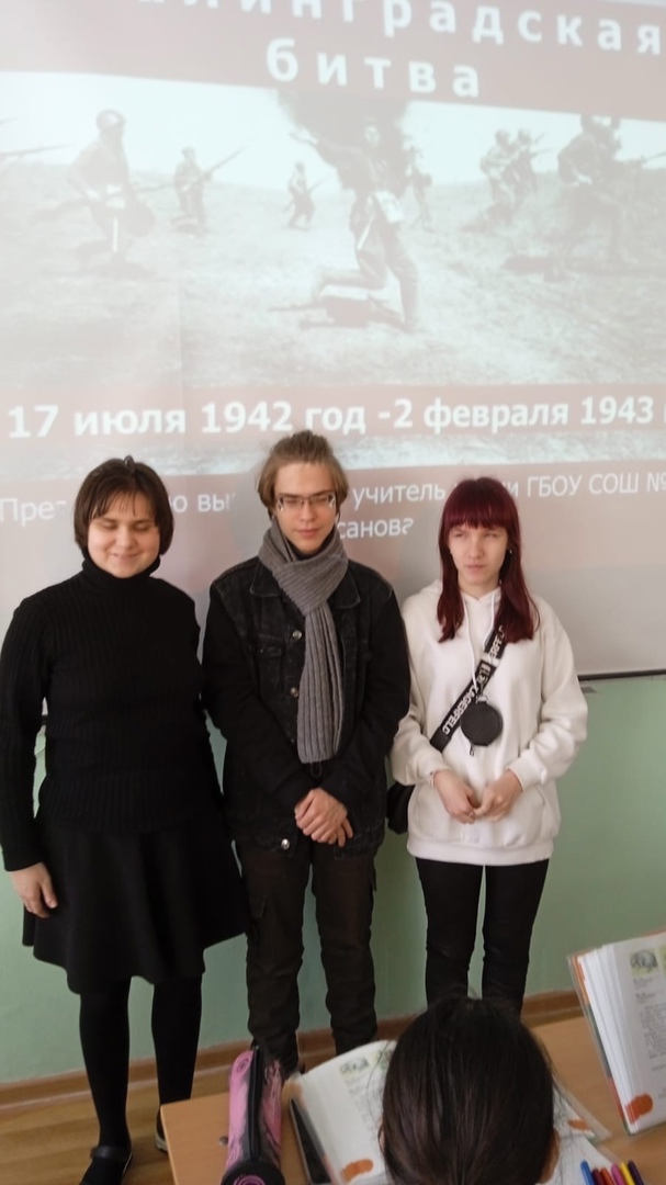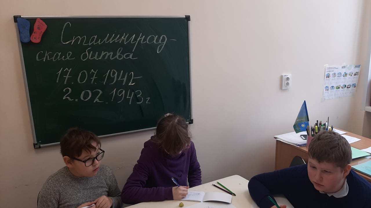 Так, в 5 В прошел классный час, посвященной Сталинградской битве. фото