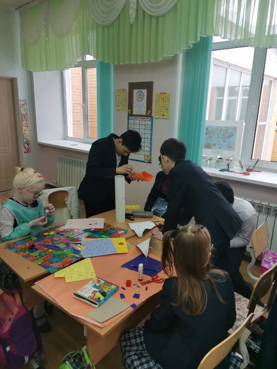 Совместный мастер-класс 5г и 1б по созданию макетов ко дню космонавтики "Этот загадочный космос". педагоги Ширыбырова Л.Н., Чентаева Я.А.