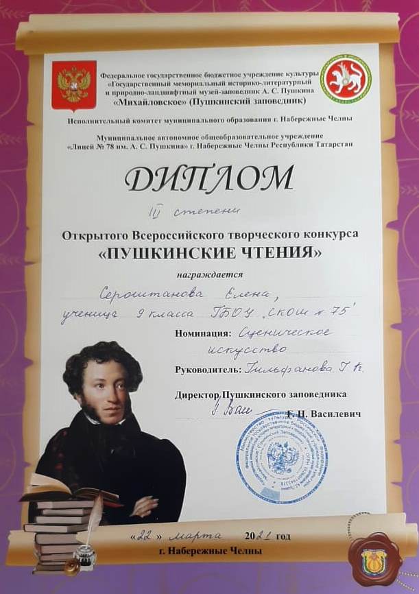 Учитель литературы Гильфанова Г.К. с учащимися 8-9 классов приняли участие в Всероссийском Открытом творческом конкурсе "Пушкинские чтения". И наши девочки отлично выступили и заняли призовые места. Так держать! Поздравляем!!! фото фото фото