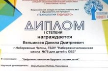 Ученик 1 класса нашей школы Вельмизев Данила под руководством педагога Ширыбыровой Л.Н. получил диплом первой степени в номинации "Цифровые технологии будущего глазами детей" в Всеоссийском конкурсе. Подравляем!!! Ждем новых побед.