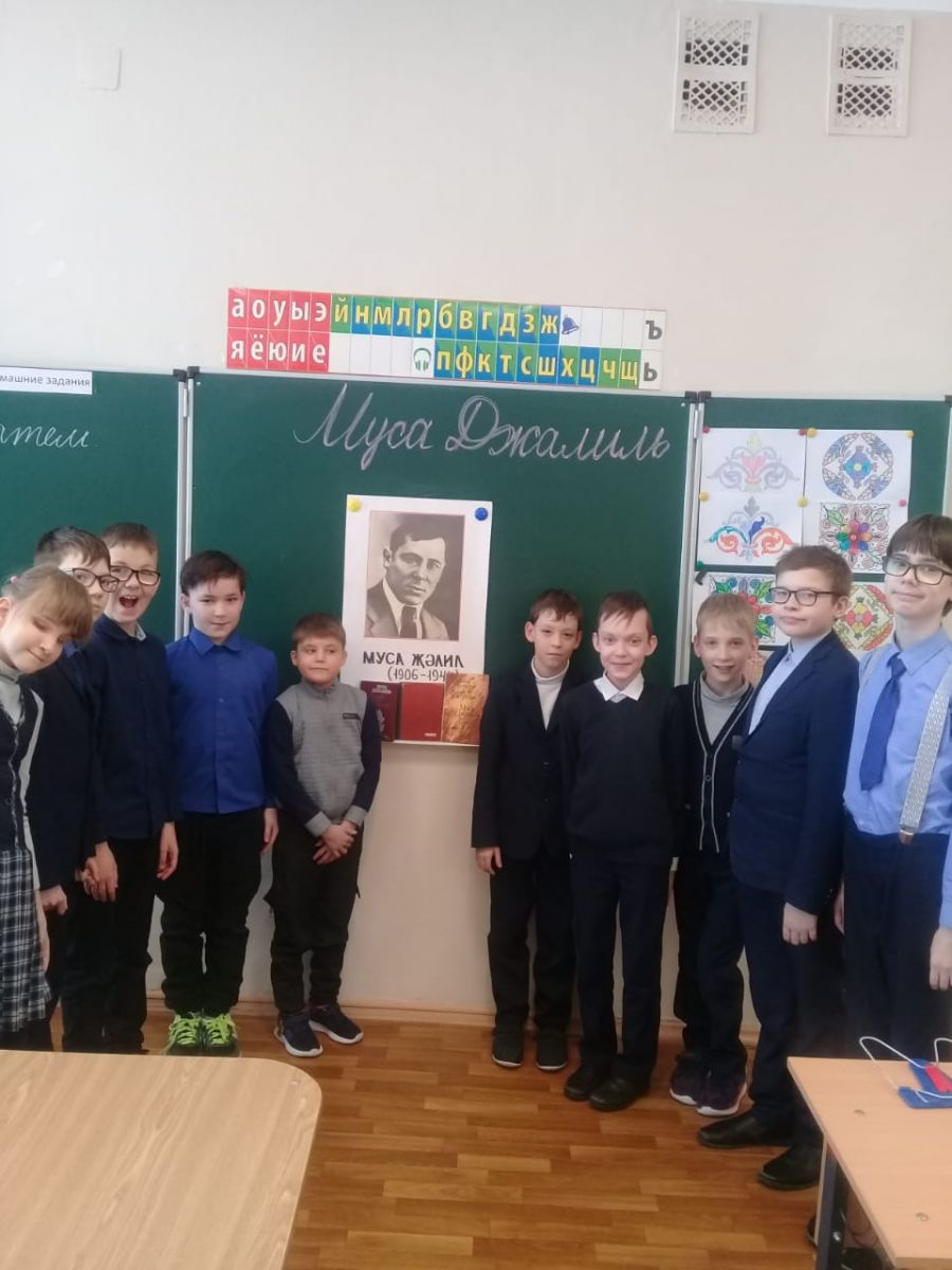 В рамках военно-патриотического месячника 5-в класс посетил музей Боевой славы ГДТДиМ №1. Также педагог Хасанова Л.С. провела классный час приуроченный к 115 летию героя - поэта Мусы Джалиля.