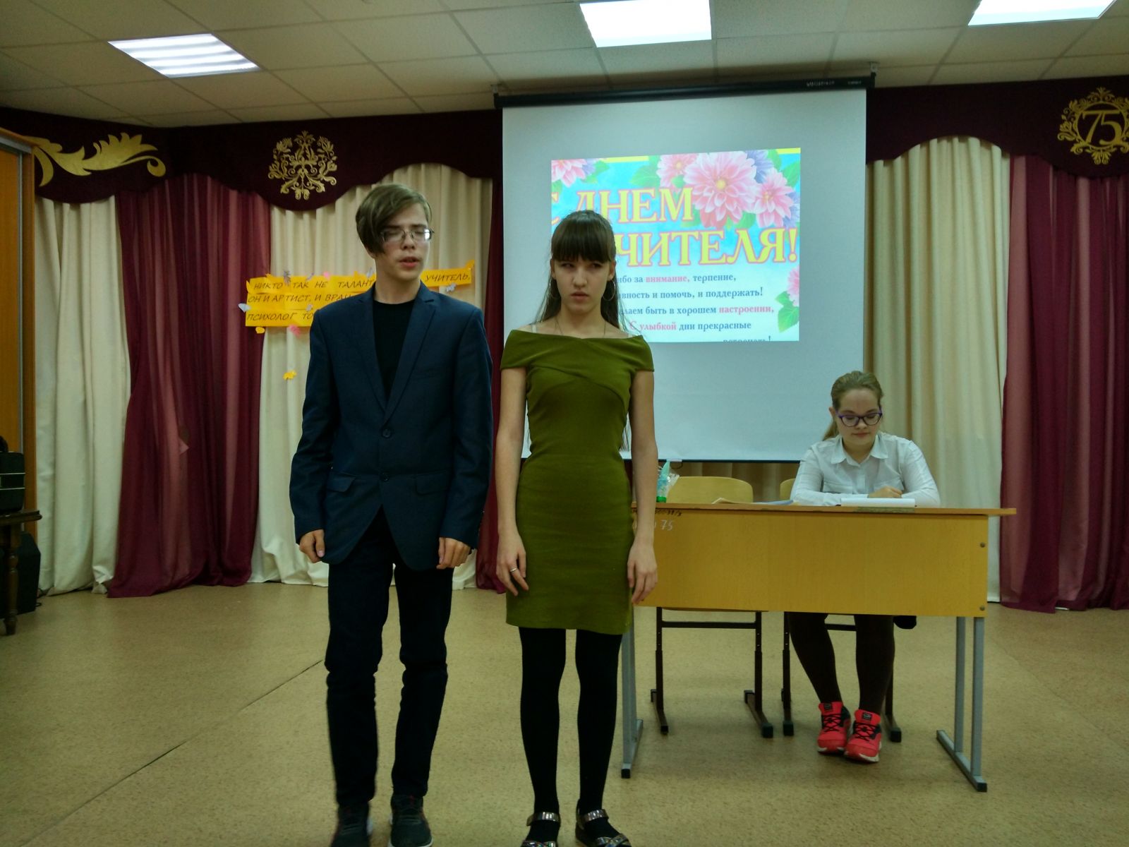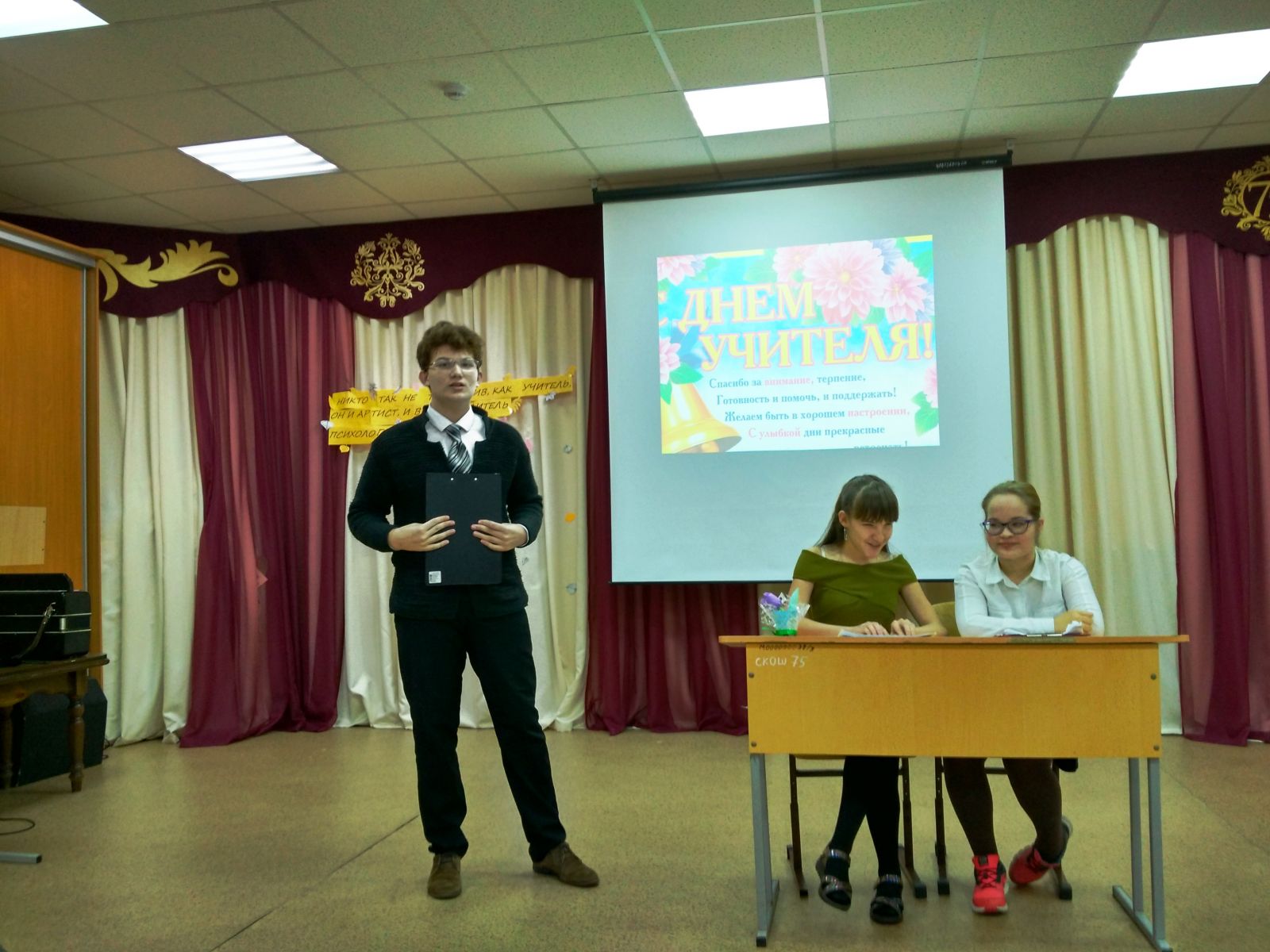 Сегодня в школе состоялся концерт к Дню Учителя. Учащиеся 1-10 классов подготовили номера, ученики 8 А и 9 А классов вели концерт под руководством учителя музыки Регины Вячеславовны. Молодцы!!!