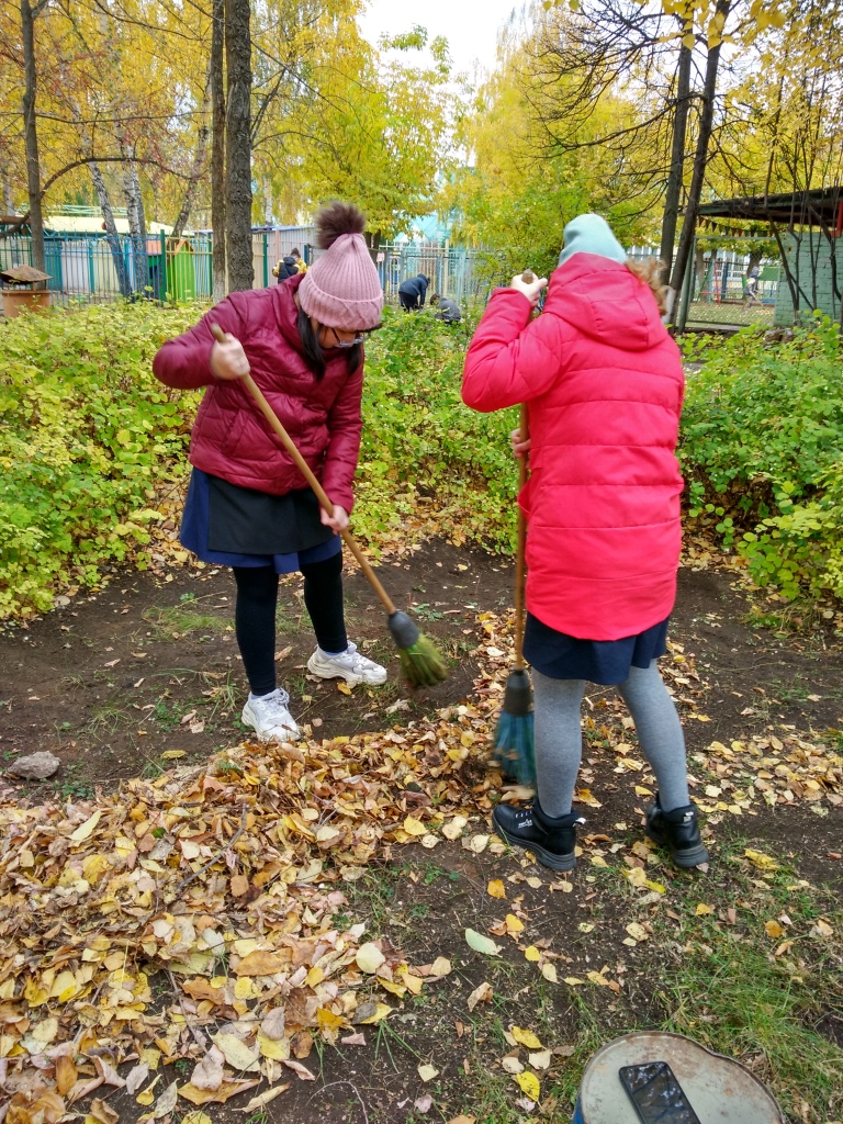 С началом октября работники школы, родители и учащиеся выходят на территорию школы и наводят порядок и чистоту.