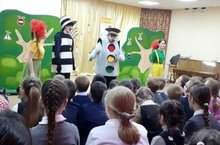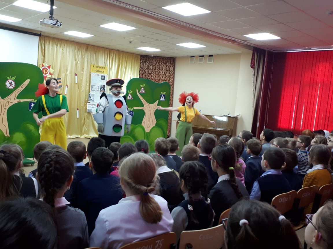Сегодня в школе целое событие! К нам приехали гости - артисты Набережночелнинского драматического театра и показали ребятам начальной школы спектакль "Светофория". Особенно были рады первоклассники, у которых начались каникулы. Дети с удовольствием участвовали в спектакле и разгадывали задания по ПДД. Спасибо большое артистам театральной труппы за потрясающую атмосферу, царившую в зале. фото1 фото2 фото3 фото4