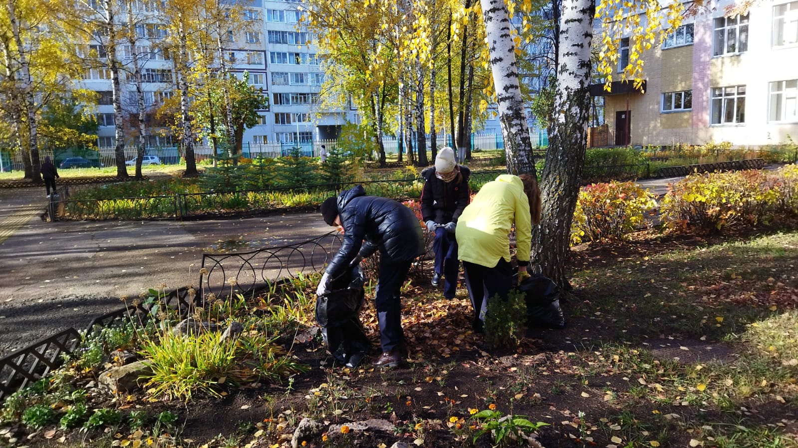Вооружившись необходимым инвентарем, все участники приводили в порядок школьную территорию: собирали мусор, сгребали листву и траву. Общими усилиями за несколько дней вся территория преобразилось: везде чисто и красиво.