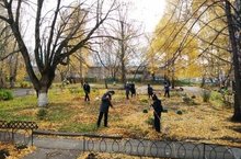 Уже третью неделю в школе продолжается месячник по уборке пришкольной территории, в котором принимают участие все сотрудники школы и ученики с 2 по 11 класс.