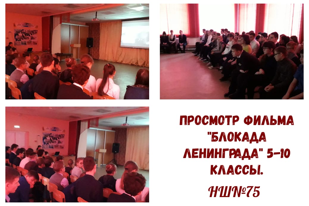 25 января в актовом зале состоялся просмотр документальных фильмов " 900 дней мужества " и "Блокада Ленинграда" для учащихся начальных классов и учащихся 5-10 классов, из которых ребята узнали о героизме и стойкости жителей Ленинграда, о строительстве спасительной «дороги жизни» через Ладожское озеро.