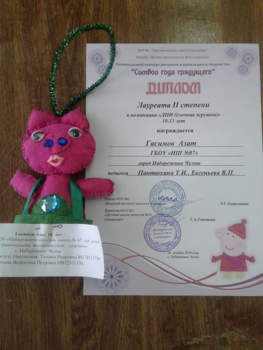 Ученики 1 и 4 классов участвовали в региональном конкурсе рисунков и прикладного творчества "Символ года грядущего", где заняли 3 места. Поздравляем их!