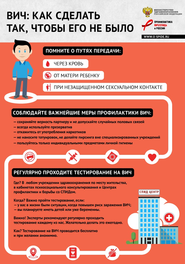 Вирус иммунодефицита человека не передается в быту. Близкие, друзья, соседи и гости ВИЧ-позитивных не рискуют заразиться при условии соблюдения обыкновенных правил гигиены. ВИЧ передается только через кровь, сперму, влагалищные выделения и грудное молоко. Другие выделения организма – пот, слюна, моча, кал – не создают риска передачи ВИЧ-инфекции.