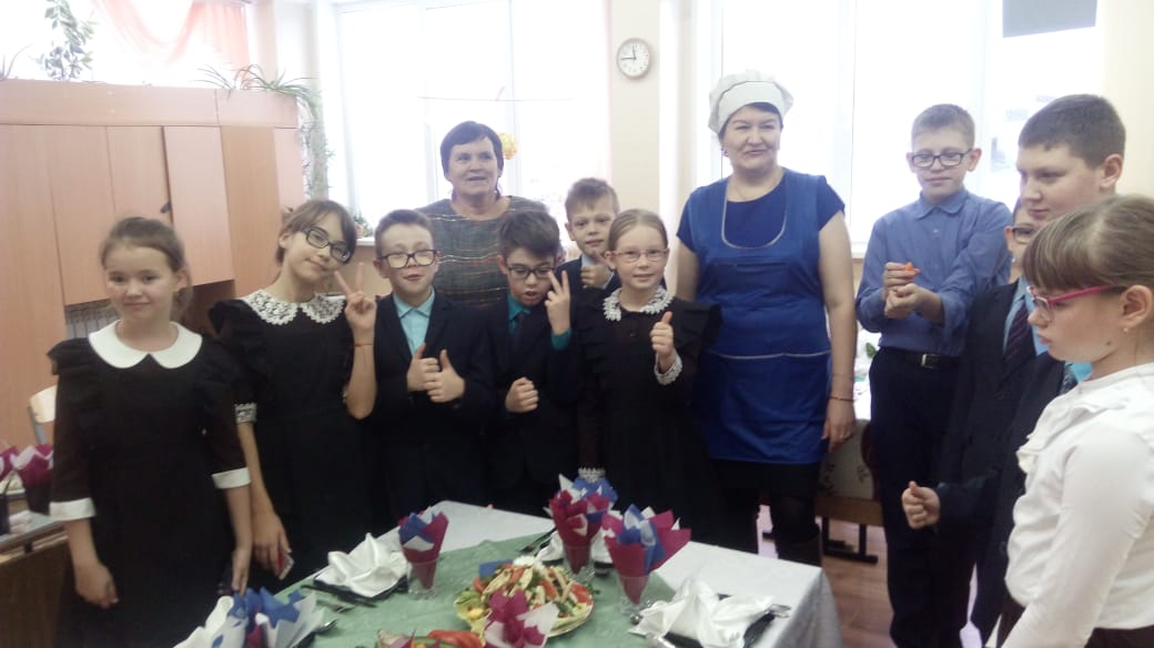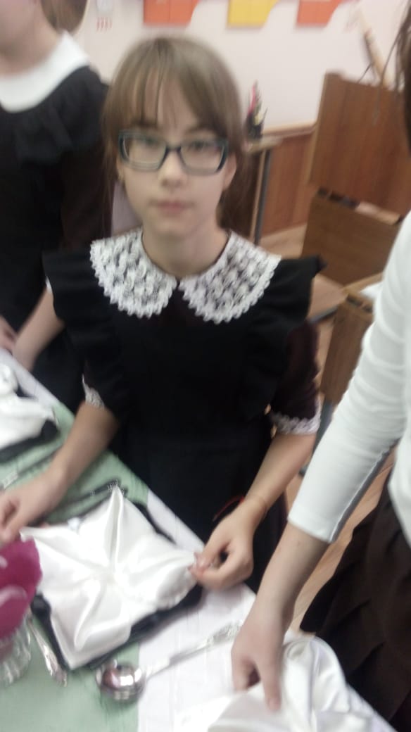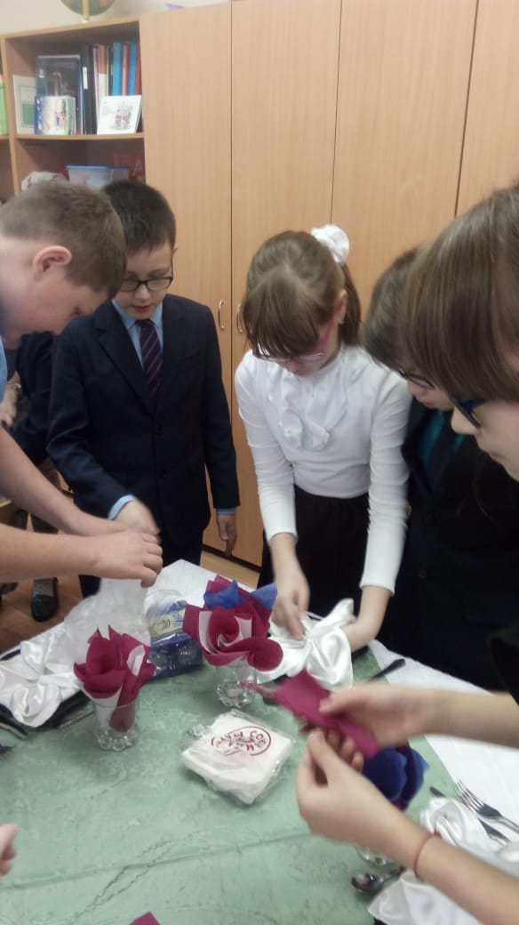 20 ноября в 4 классе в гостях были представили из кафе "Акмай", повар Мингазова Чулпан Гадильяновна показала мастер-класс по сервировке стола; дети научились делать красивые, овощные нарезки, складывать бумажные и тканевые салфетки.