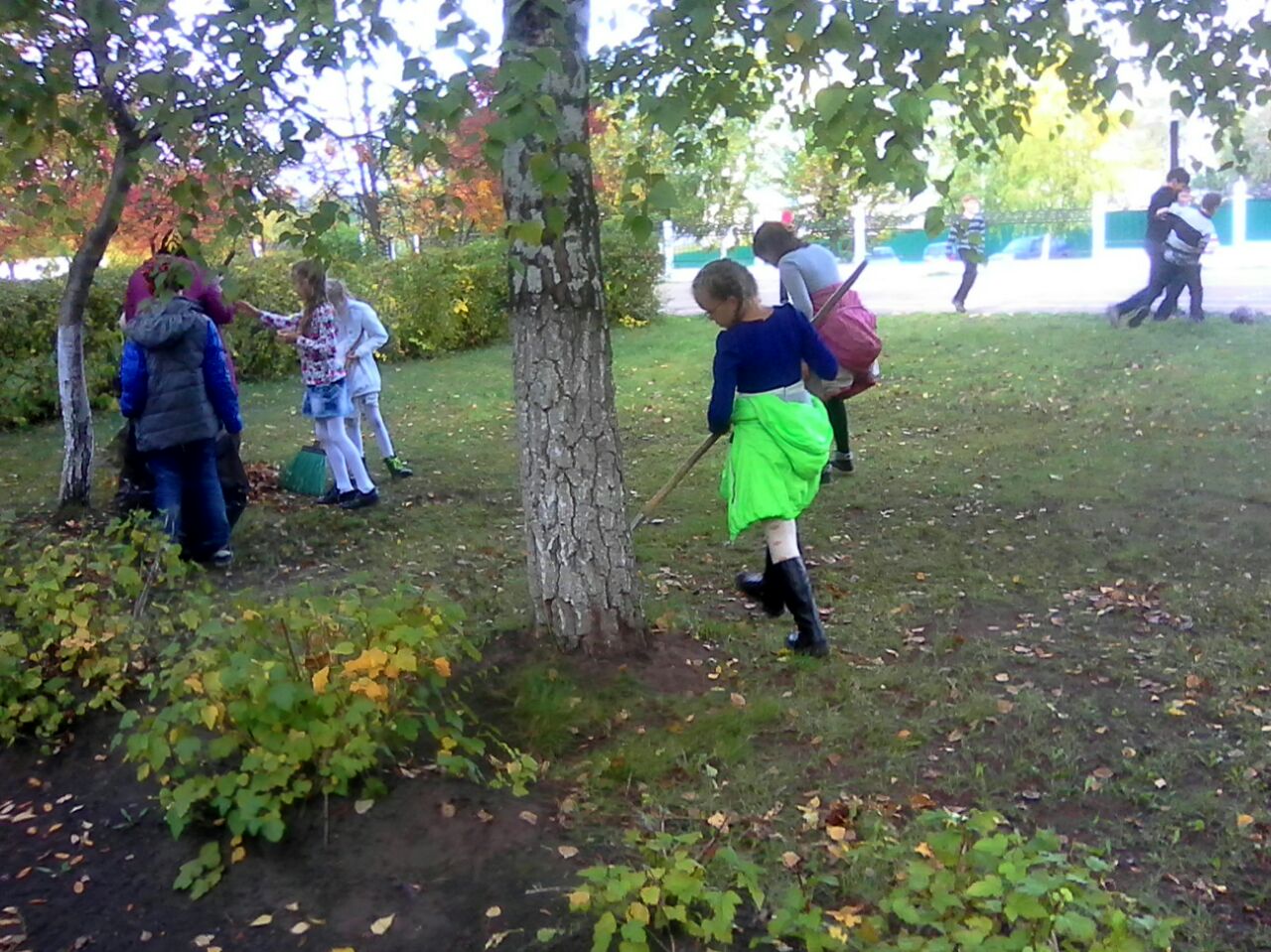 В течении месяца проходит акция "Чистая территория". Все ребята усиленно работают на пришкольном участке. Уборка продолжается...