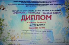 Поздравляем ученика 2а класса Баязитова Тагира с победой в Республиканском конкурсе рисунков "Каникулы веселая пора "Вперед к новым Победам. Так держать, Тагир.