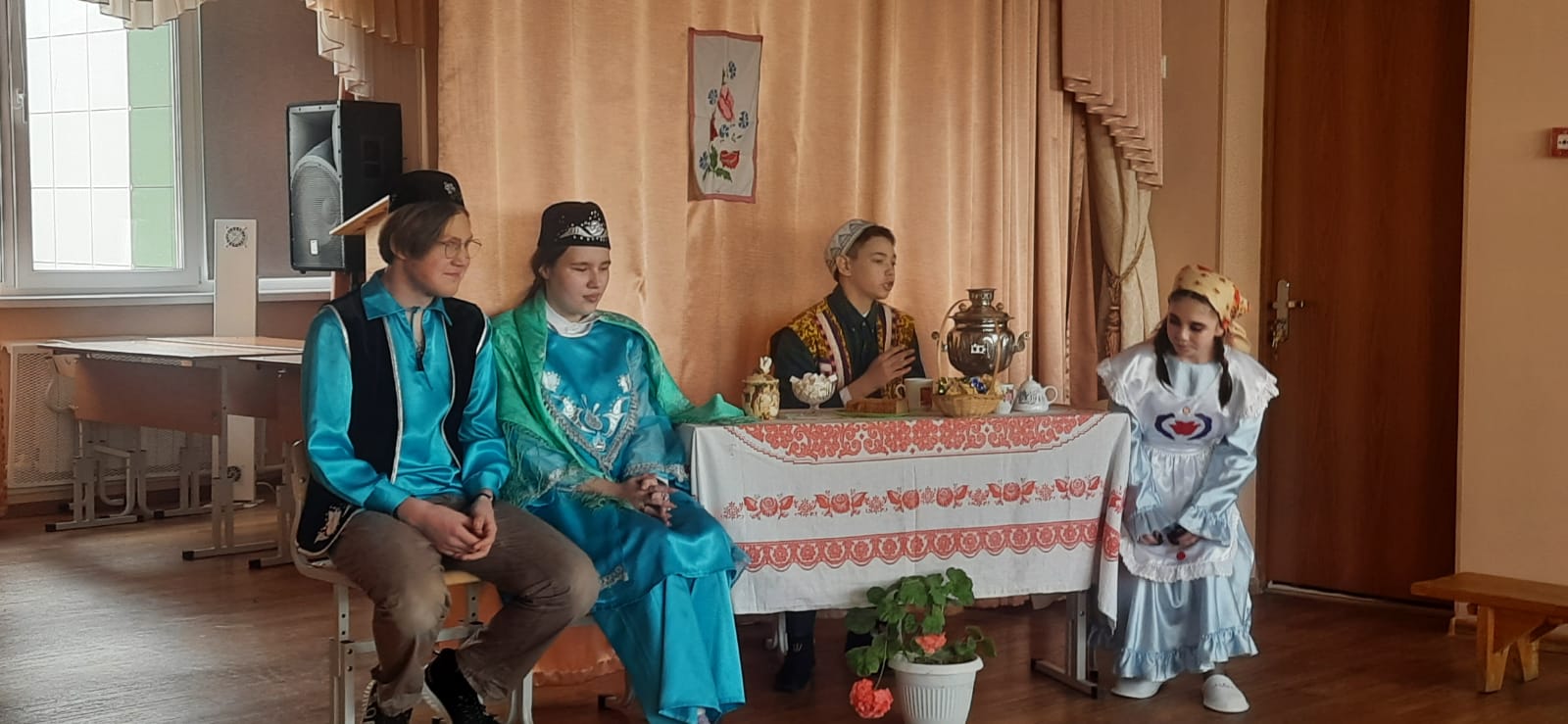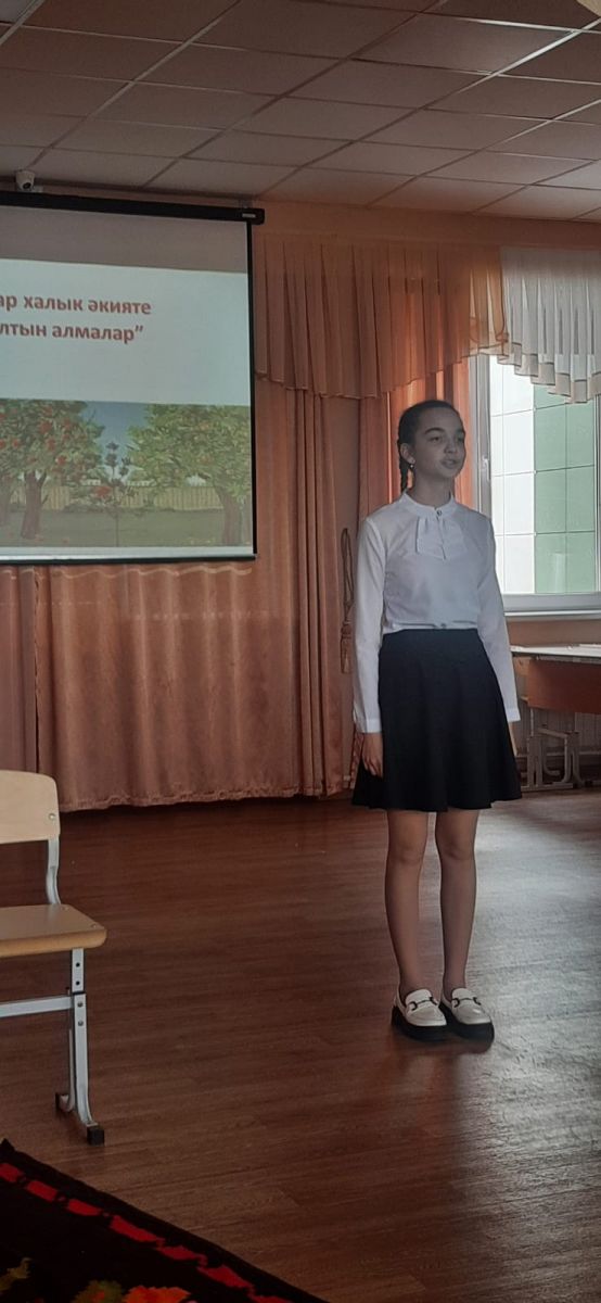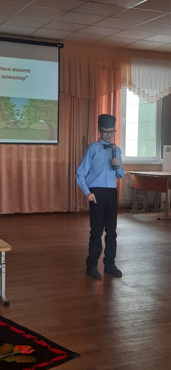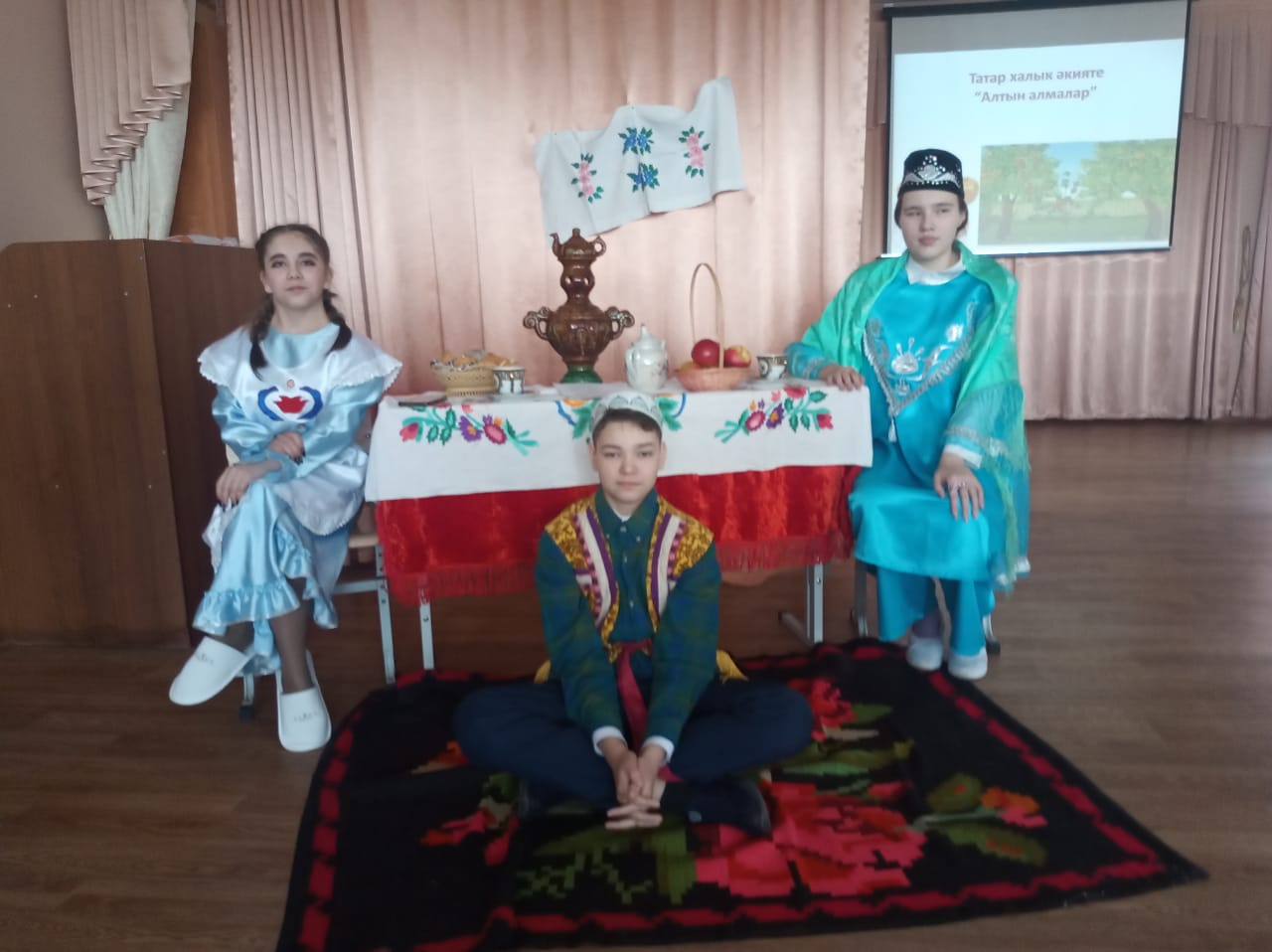 В рамках Недели педагогов гуманитарного цикла, учителя татарского языка и литературы Закирова Мунира Галиевна, Фахразиева Илуза Фаритовна подготовили и провели мероприятие с участием учащихся 3-6, 8, 10 классов. Зрителям была показана инсценировка татарской народной сказки "Алтын алмалар" ("Золотые яблоки "). Учащиеся показали свои таланты в области театрального искусства, пели песни и рассказывали стихи на родном татарском языке. Мероприятие прошло в дружеской тёплой обстановке на высшем уровне и все получили огромное удовольствие.