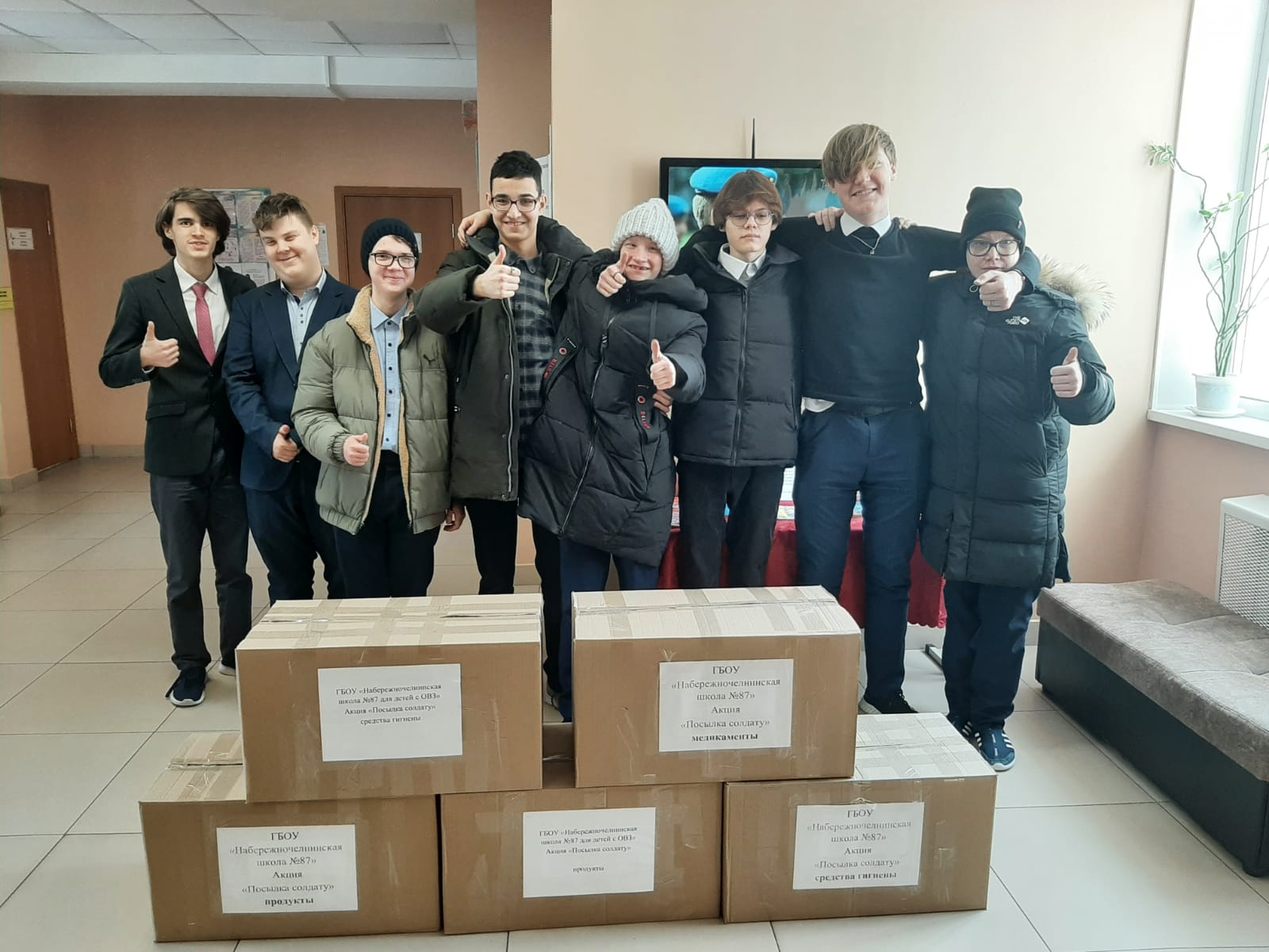 В рамках военно-патриотического месячника школа приняла активное участие в акции "Посылка солдату". Было собрано пять коробок с медикаментами, продуктами и средствами личной гигиены.