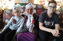 Тимуровские отряды "Горячее сердце" и "Руки помощи" приняли участие в городской акции "День героев Отечества", они посетили Карамову Азгарию Насиповну. Родилась она 1 марта 1940 года в Мензелинском районе деревне Чулпан пятым ребёнком в семье. Она как сегодня помнит 9 мая 1945 года. Все жители вышли на улицу, обнимаются, плачут. Наступили тяжёлые, голодные послевоенные годы. Даже в деревне люди жили недоедали. Она была ребёнком. Всех детей деревни собирали ежедневно в школе и 1 раз кормили черпаком супа. Железные тарелки, деревянные ложки, каждому стакан чая и ложка мёда. Мед детям приносил пчеловод Биктимер бабай из своей пасеки. Суп для детей готовила учительница Хадичэ апа. Азгария Насиповна и сегодня вспоминает их с благодарностью. Летом дети кушали в лесу ягоды, орехи, разные травы. Осенью ученики с учителем Файзелахмэт абый выходили на поля собирать остатки колосков пшеницы, ржа. Дети были плохо одеты, голыми ногами ходили по земле. Остатки растений врезались в ступни детей, ноги кровили, но голодные дети терпели боли. Кушать сильно хотелось. Собранные колоски очищали и получившие зерна жарили на костре. Было очень вкусно и сытно. После завершения полевых работ на каждого члена семьи колхоз выдавал по 2 кг муки. Этого должно было хватить до следующей осени. 1947 году колхоз переименовали в совхоз. После этого начали выплачивать заработную плату. Они начали жить лучше.