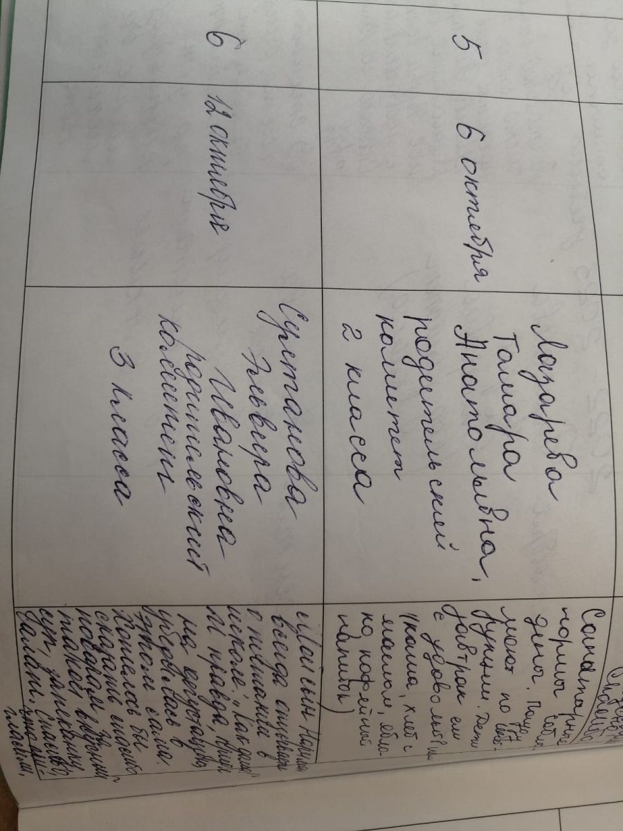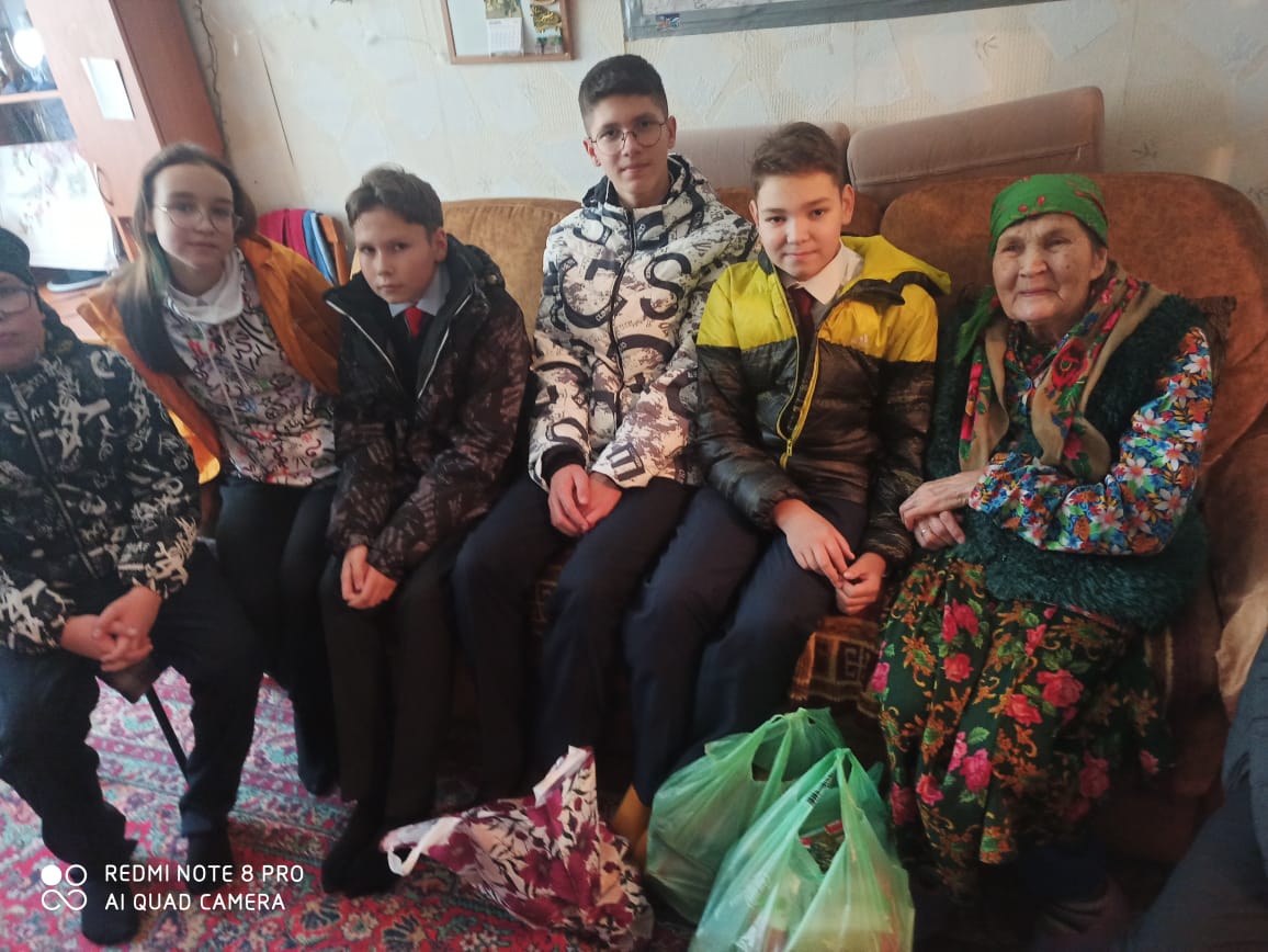 Тимуровские отряды с 1.10.22 г. по 10.10.22 г. посетили: труженицу тыла Мингазову Кариму Мингулловну, Галеева Рима Хамзовича, Кургужаеву Назию Гатуфовну, Ханию Асадулловну Валиуллину, Гарифуллову Миннирут Загриевну, Ситдикову Дамиру Салиховну, Цветкову Веру Михайловну, Газимзянову Минсулу Магзануровну.