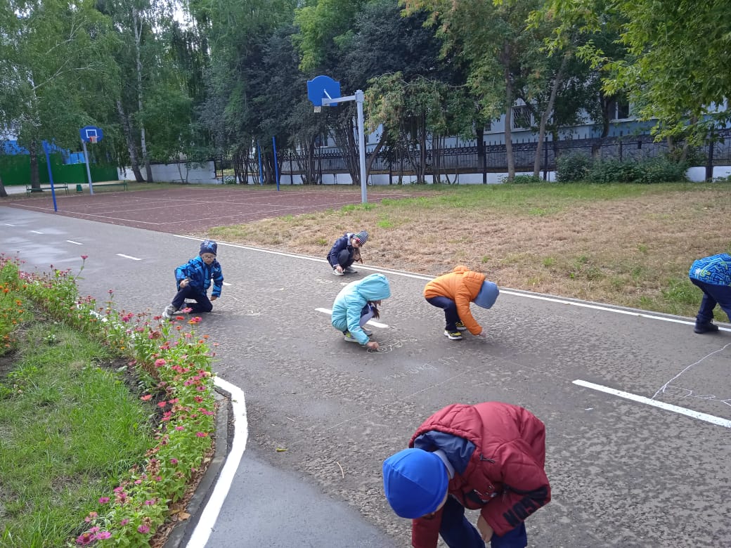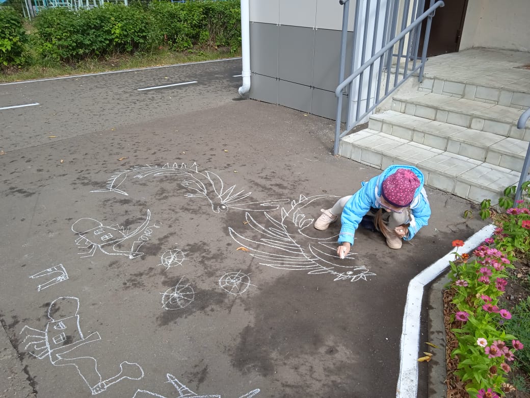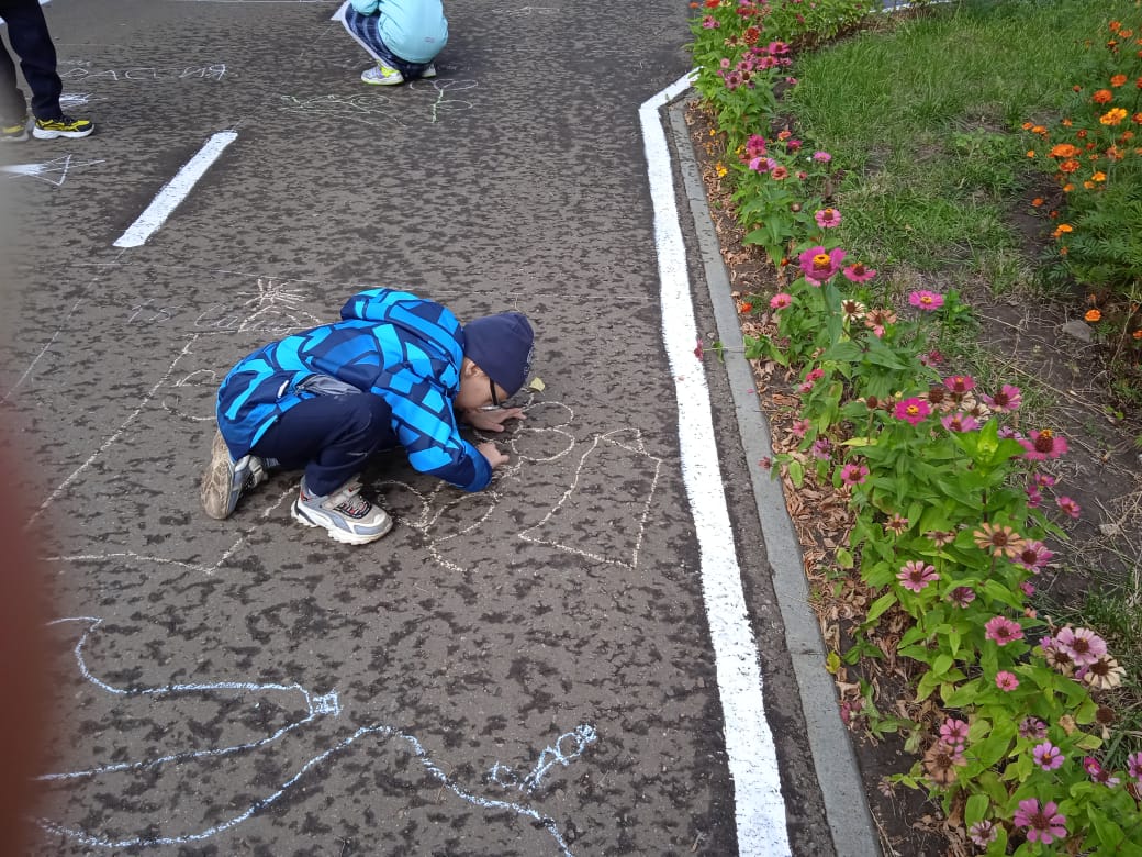 В рамках Месячника безопасности прошёл конкурс рисунков на асфальте "Радостный мир"